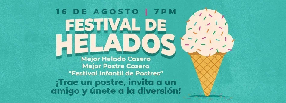 ¡Ven y únete a nosotros en el Salón de Confraternidad con tu helado o postre casero! Los premios se otorgarán al Mejor Helado Casero y al Mejor Postre Casero. ¡También presentaremos este año el "Festival Infantil de Postres"! Niños de 12 años o menos pueden participar para tener la oportunidad de ganar un premio al mejor postre casero. Por favor traiga algo, ya sea hecho en casa o comprado en la tienda, para asegurarnos de que haya suficiente comida para todos. Se proporcionarán bebidas. Recuerde traer a sus amigos, vecinos o familiares, ya que será una excelente oportunidad de presentarlos a la familia de nuestra Iglesia. Para mayor información, comuníquese con Jeff Hinson.